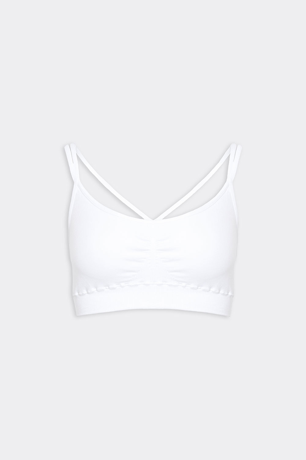 Перекрестная конструкция бретелей на спине распределяет нагрузку, обеспечивая комфорт даже во время прыжков.