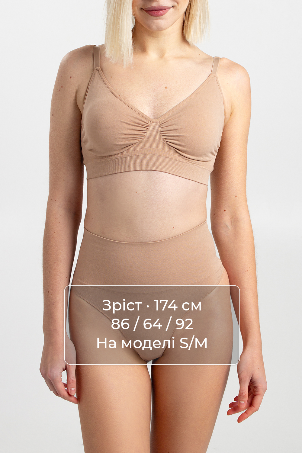 Топ обладает лёгким моделирующим эффектом: мягко приподнимает и аккуратно формирует грудь, создавая естественный, привлекательный силуэт без косточек и чрезмерного сдавливания. Под грудью — широкая эластичная резинка, которая надёжно фиксирует топ, не пережимает и обеспечивает дополнительную стабильность в течение всего дня.