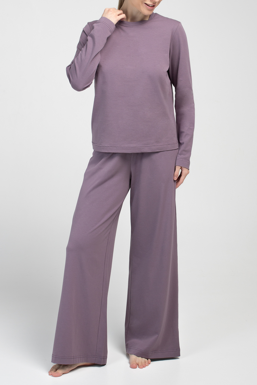 Домашний комплект с лонгсливом и штанами — универсальный вариант, в котором легко переключиться с рабочего ритма на спокойный домашний режим.