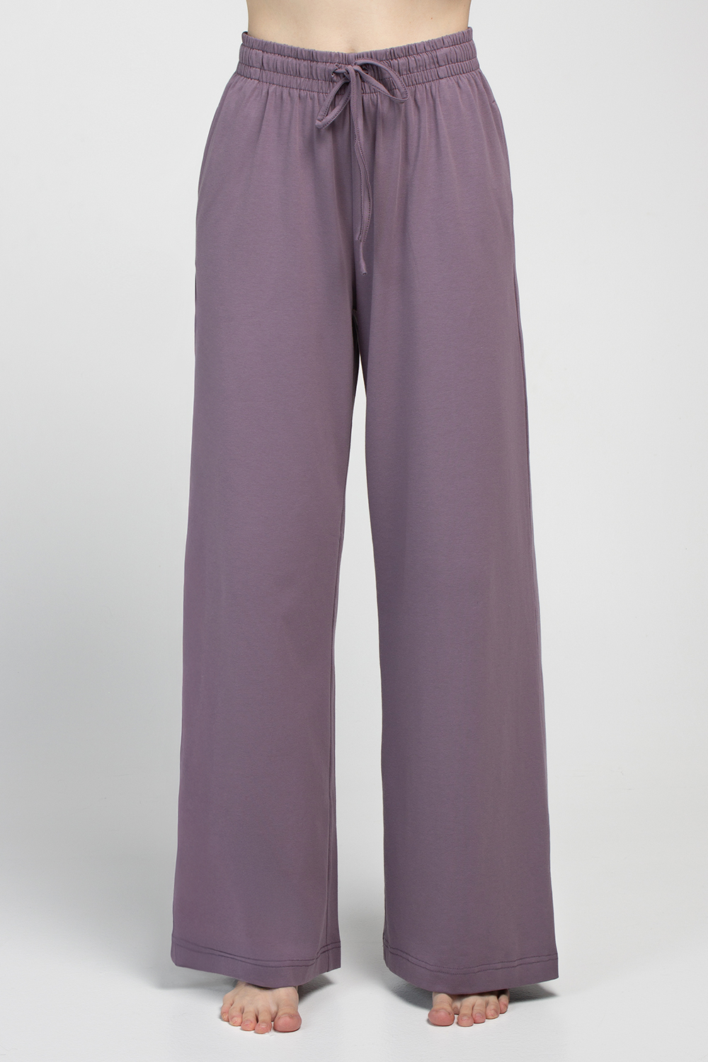 Прямые штаны формируют современный силуэт и подходят для отдыха дома или неспешных утренних часов.