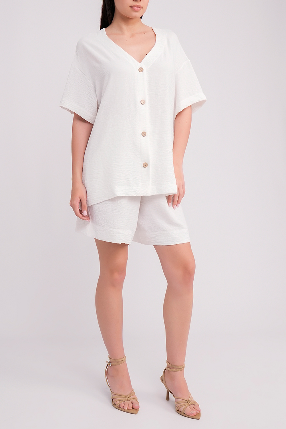 Элементы комплекта легко сочетаются как между собой, так и с другими вещами гардероба, позволяя создавать разнообразные летние образы.