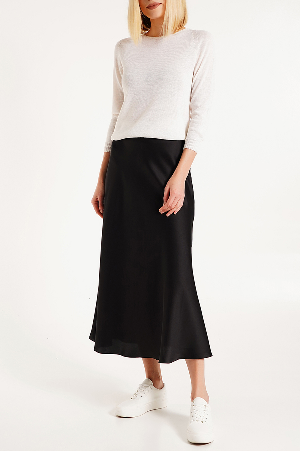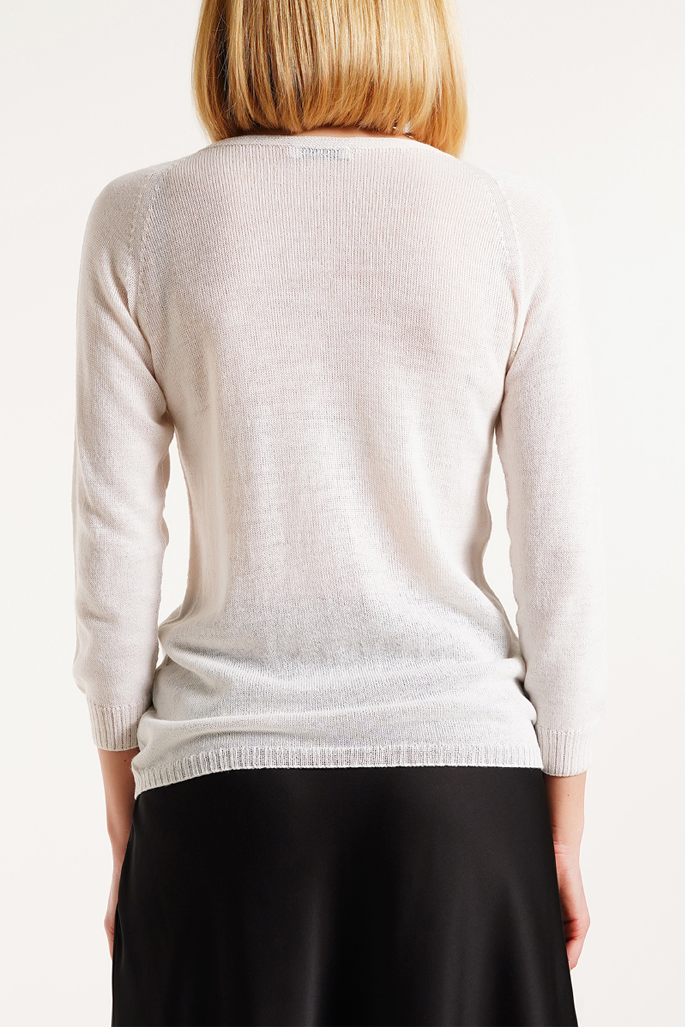 Аккуратный круглый вырез элегантно подчёркивает линию шеи и делает силуэт более женственным. Благодаря сдержанному минималистичному дизайну джемпер легко сочетается как с классическими вещами, так и с повседневными образами, создавая стильные и современные комплекты.