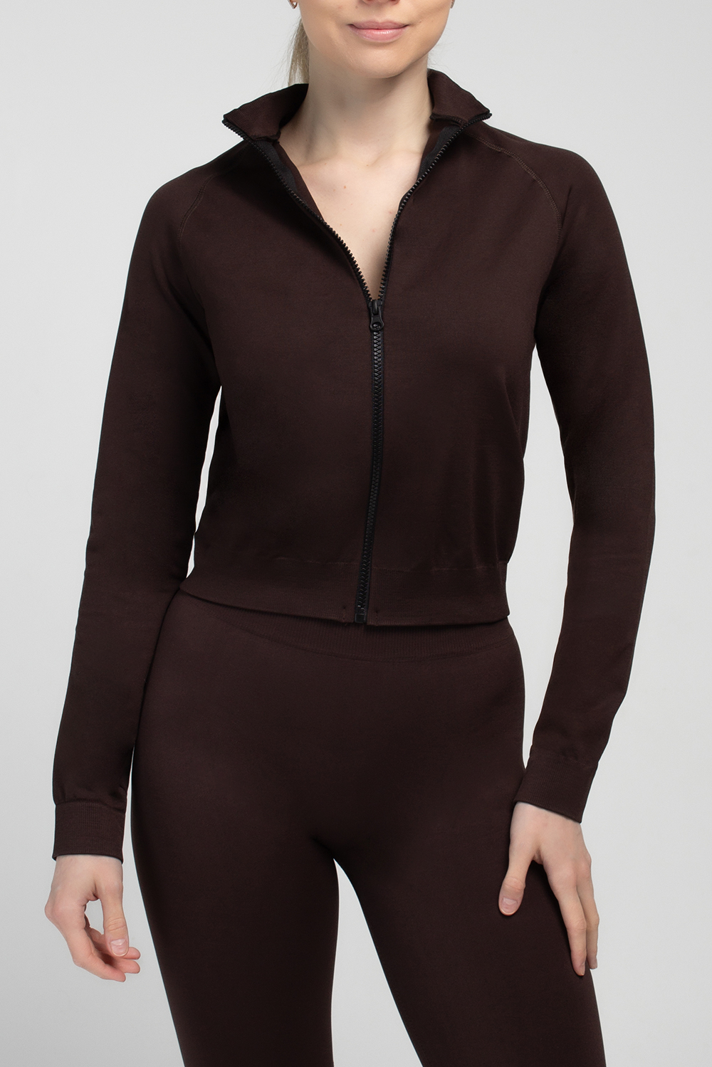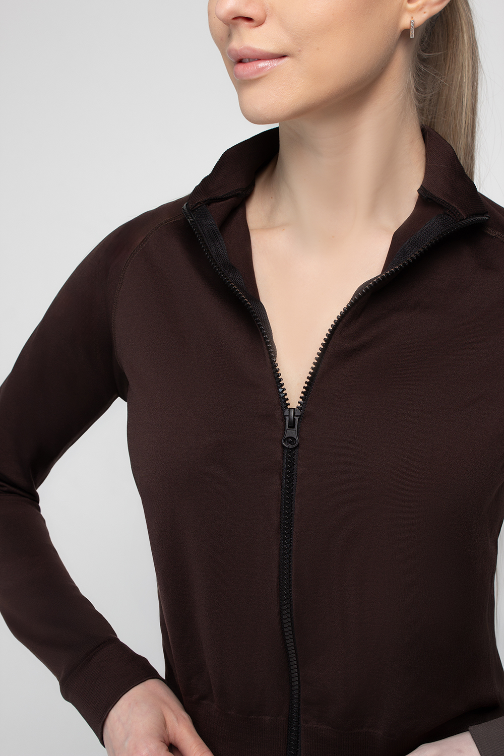 Бесшовный лонгслив с молнией JACKET Giulia (hot chocolate), коричневый
