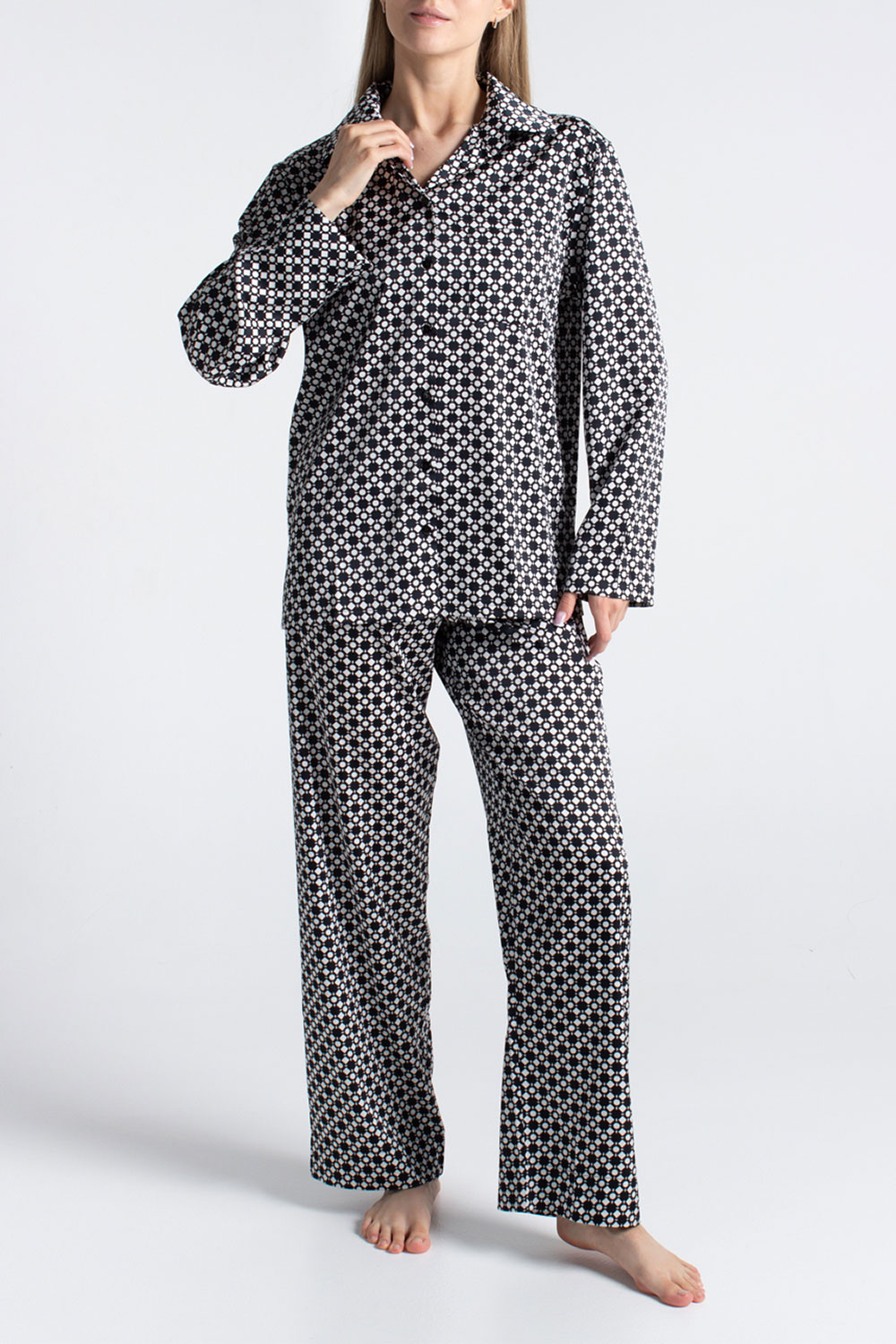 Пижама из шелка NOIRE 5903/050 Giulia (white/twilight teal rhomb), белый/черный