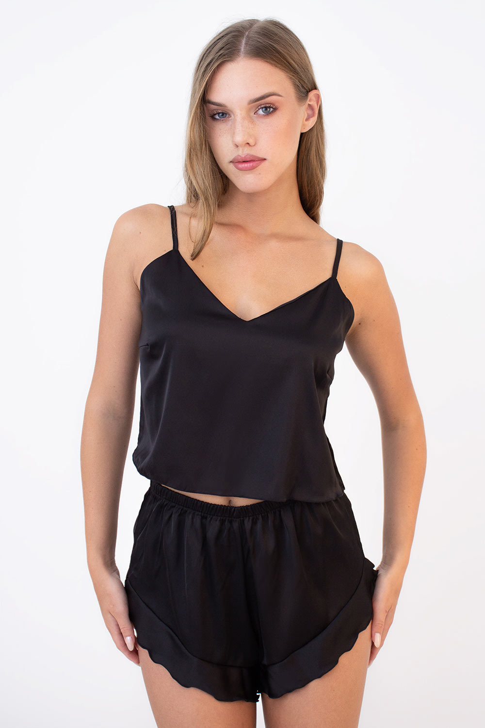 Наш пижамный комплект из искусственного шелка создан для того, чтобы ты чувствовала себя легко, нежно и по-настоящему женственно.
