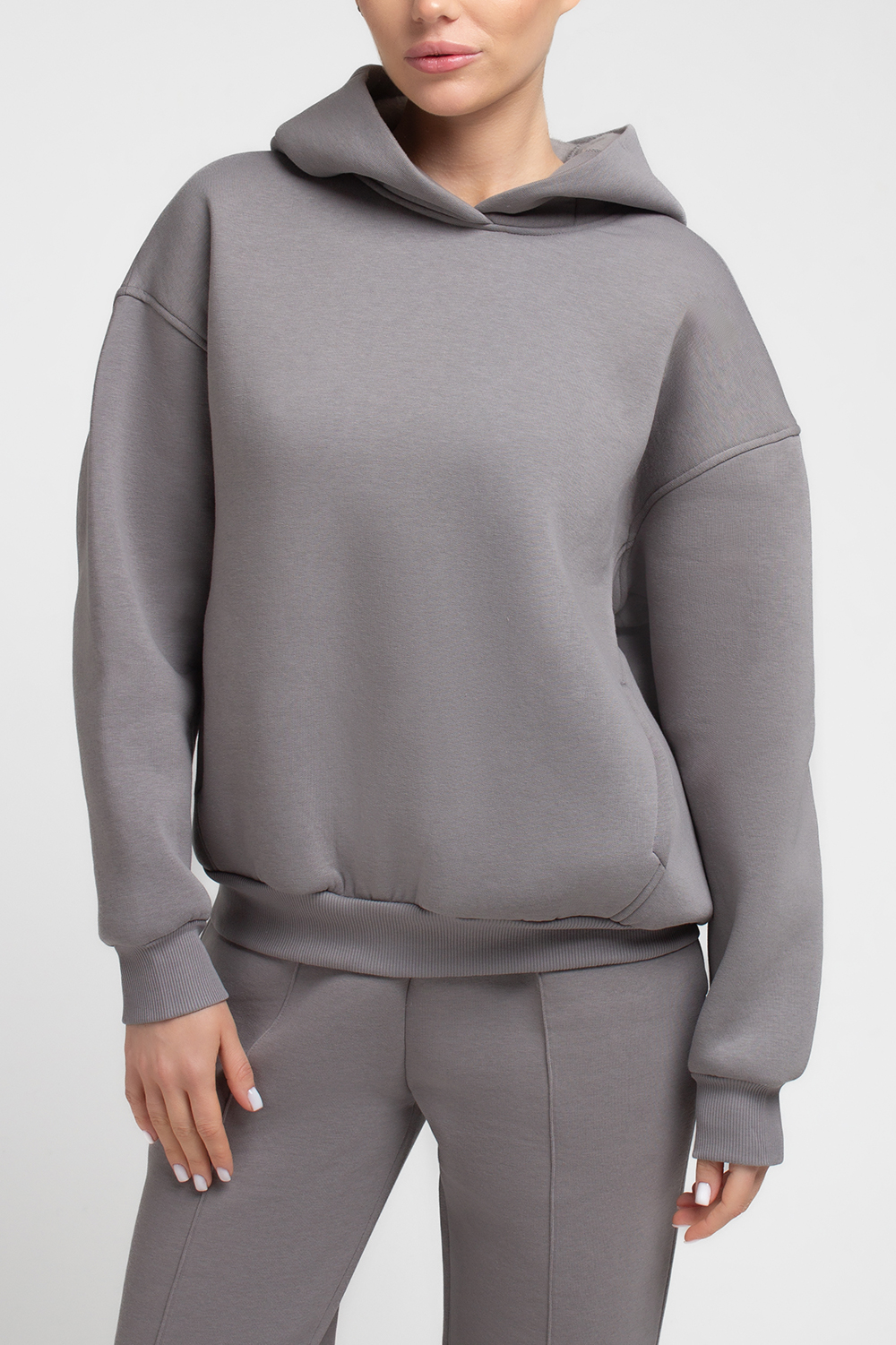 Спущенный рукав делает посадку худи более универсальной и мягко формирует линию плеч.