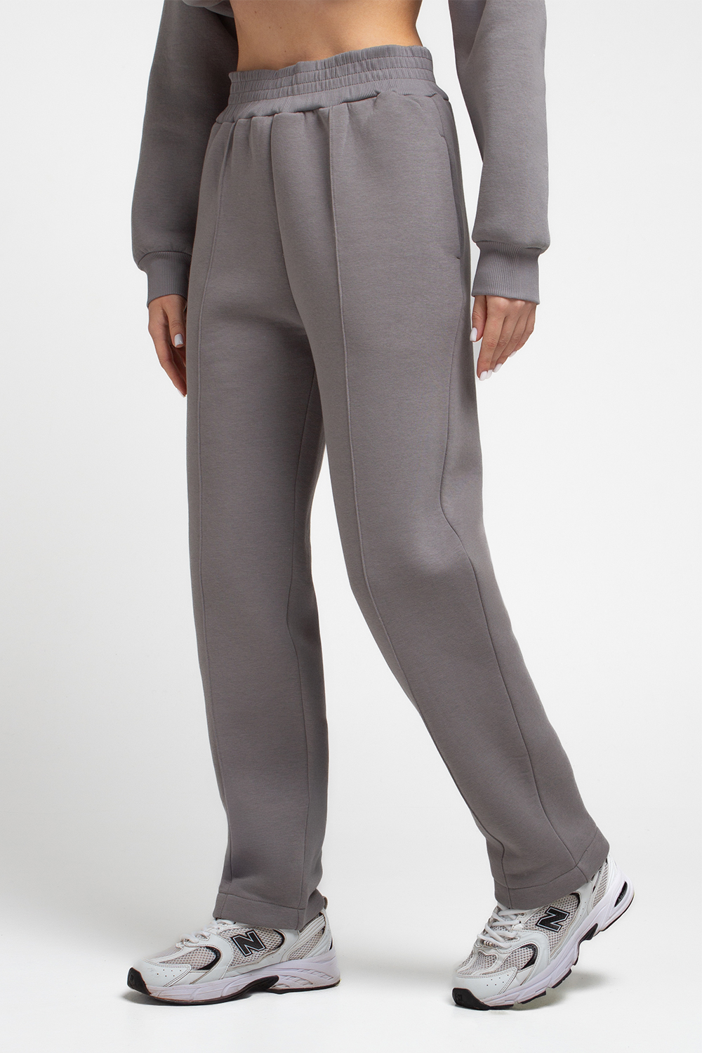 Прямые штаны со стрелками выглядят стильно и визуально удлиняют ноги.