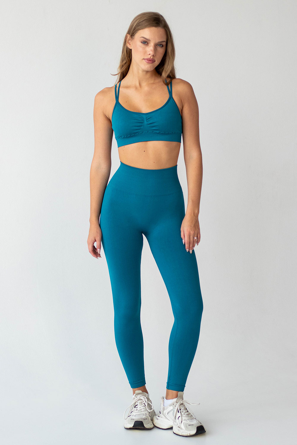 Перехресна конструкція бретелей на спині розподіляє навантаження, забезпечуючи комфорт навіть під час стрибків.