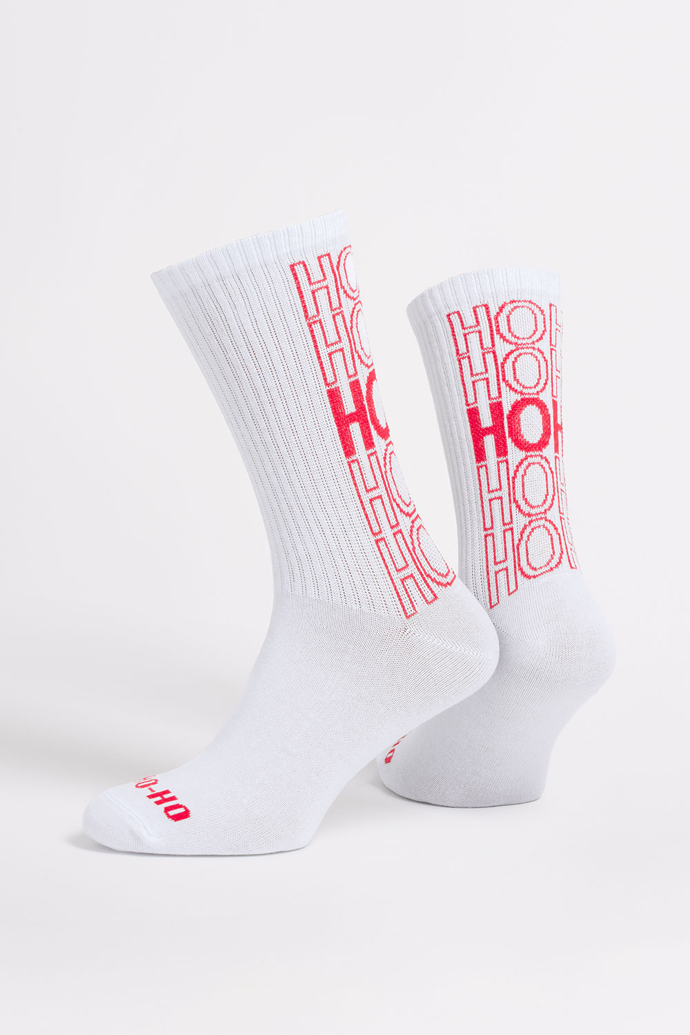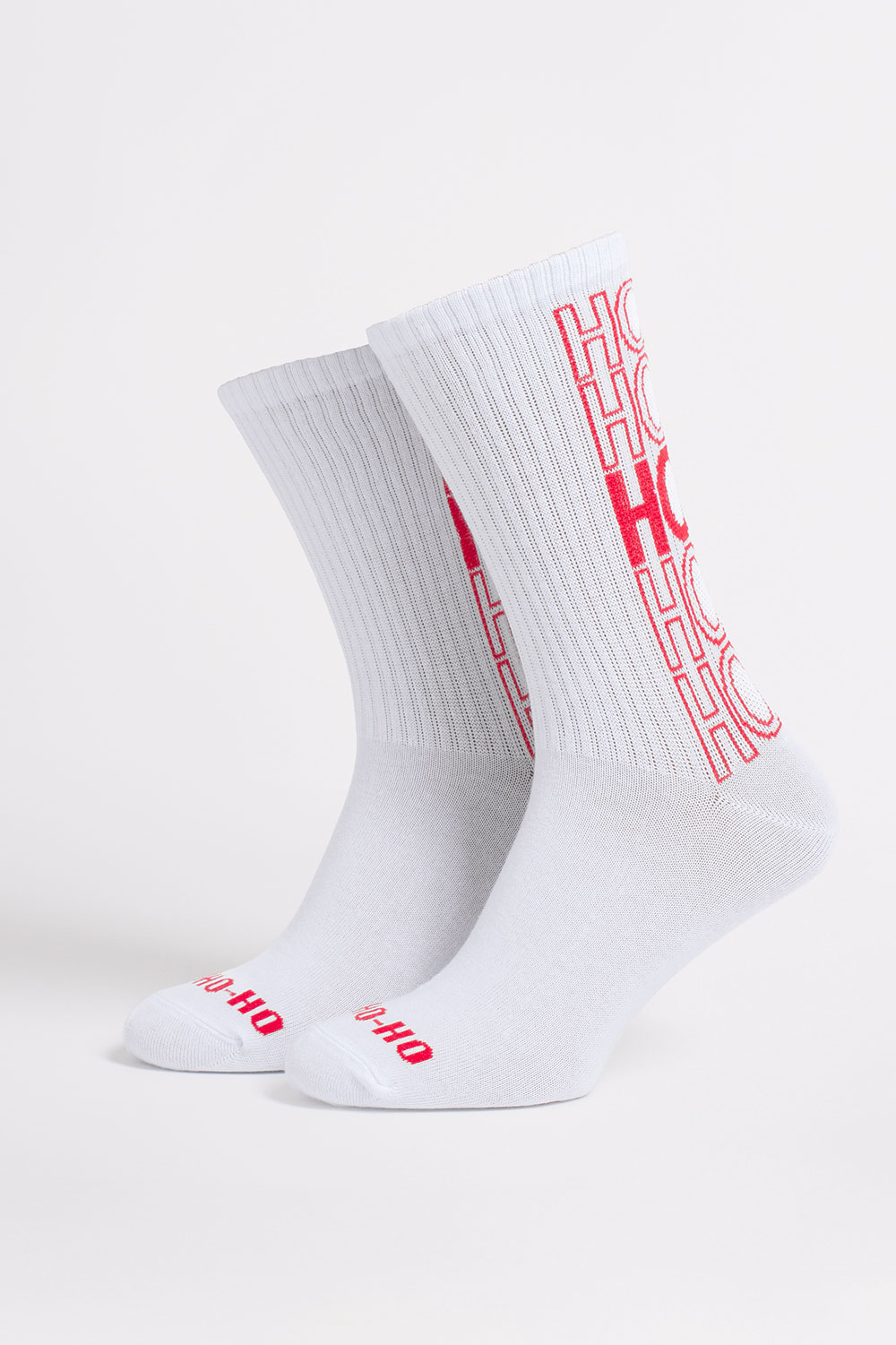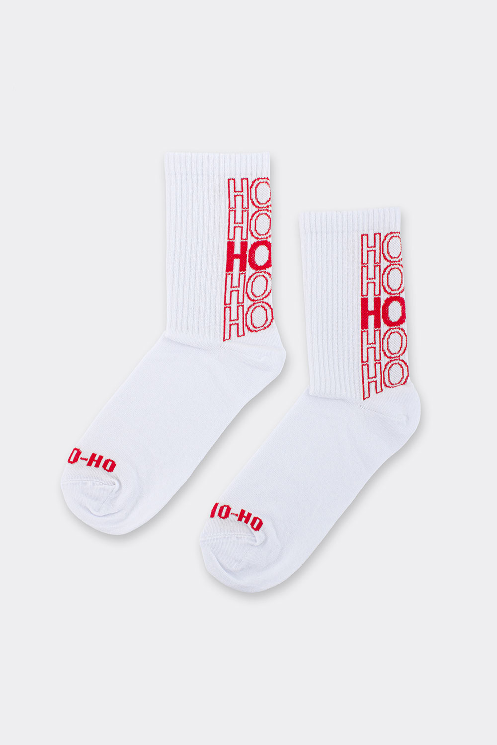 Чоловічі шкарпетки в рубчик MS3 NEW YEAR STRONG 2601 — стильні та затишні шкарпетки зі святковим написом HO-HO-HO-HO на задній частині.