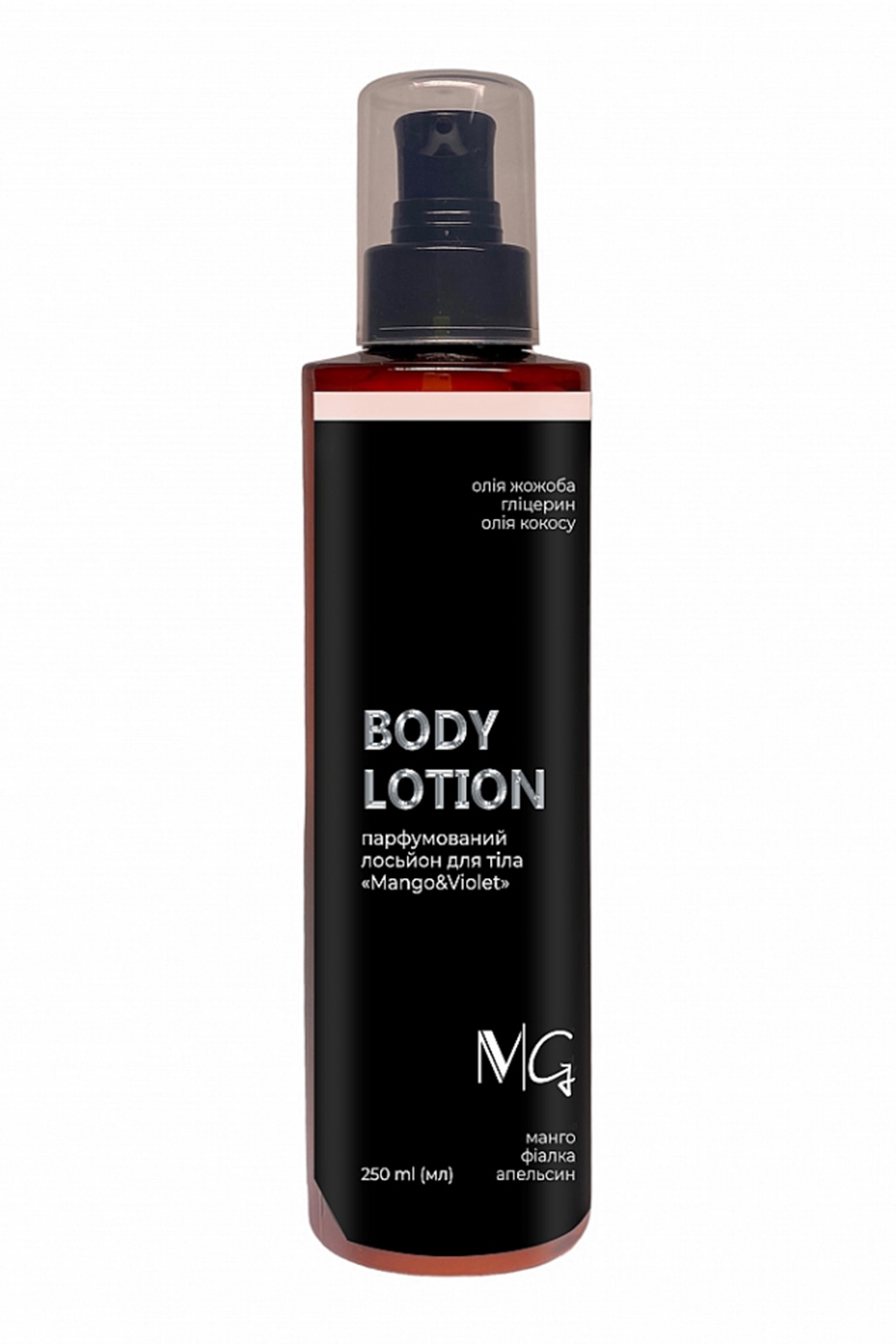 Парфумований лосьйон для тіла "Mango & Violet" від бренду MG для сприяє живленню та зволоженню шкіри, залишаючи тонкий аромат вишуканих парфумів