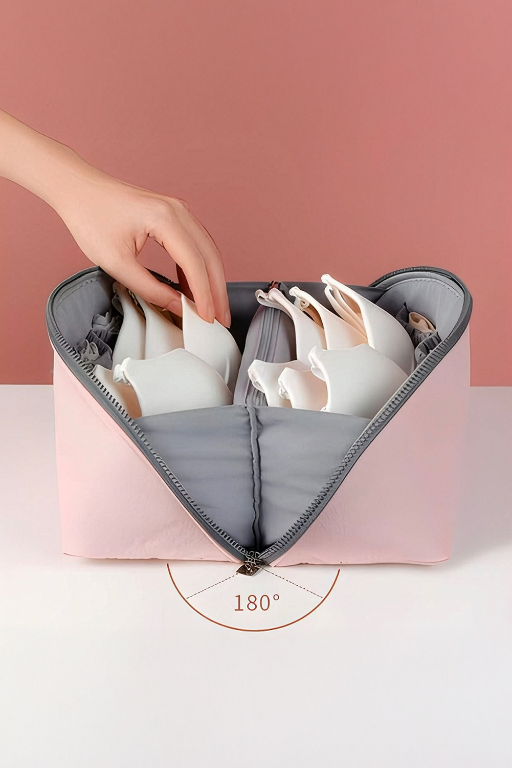 Компактний органайзер стане ідеальним рішенням для зберігання нижньої білизни та дрібних аксесуарів у подорожах. Він допомагає зручно розмістити бюстгальтери, трусики та шкарпетки, зберігаючи порядок у валізі.