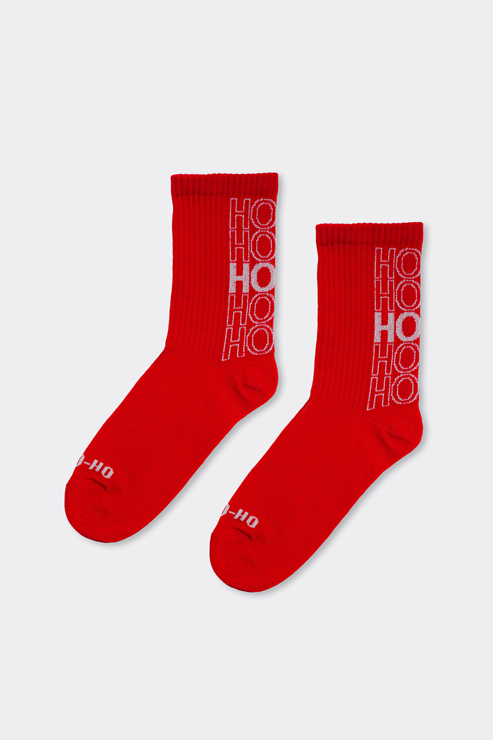 Чоловічі шкарпетки в рубчик MS3 NEW YEAR STRONG 2601 — стильні та затишні шкарпетки зі святковим написом HO-HO-HO-HO на задній частині.