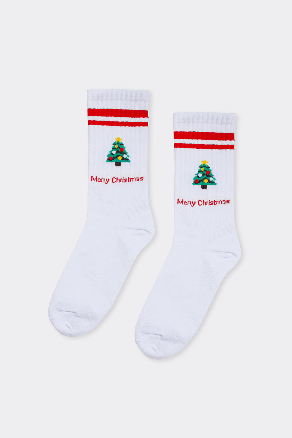 Чоловічі шкарпетки з ялинкою MS4 NEW YEAR STRONG 2602 Giulia (white/red), білий/червоний