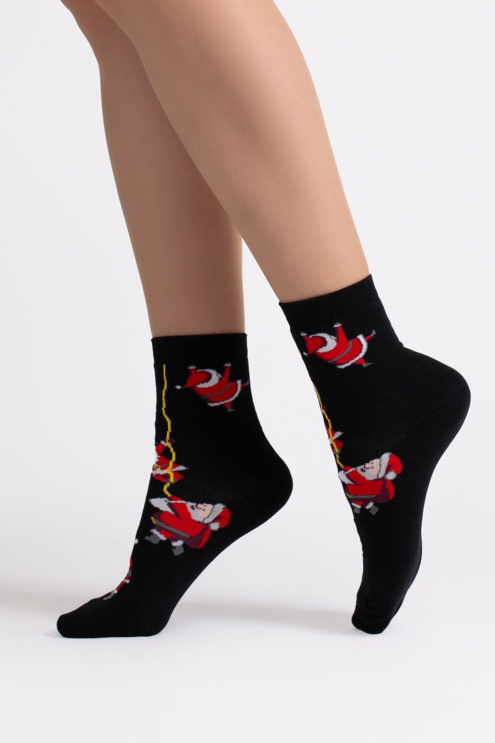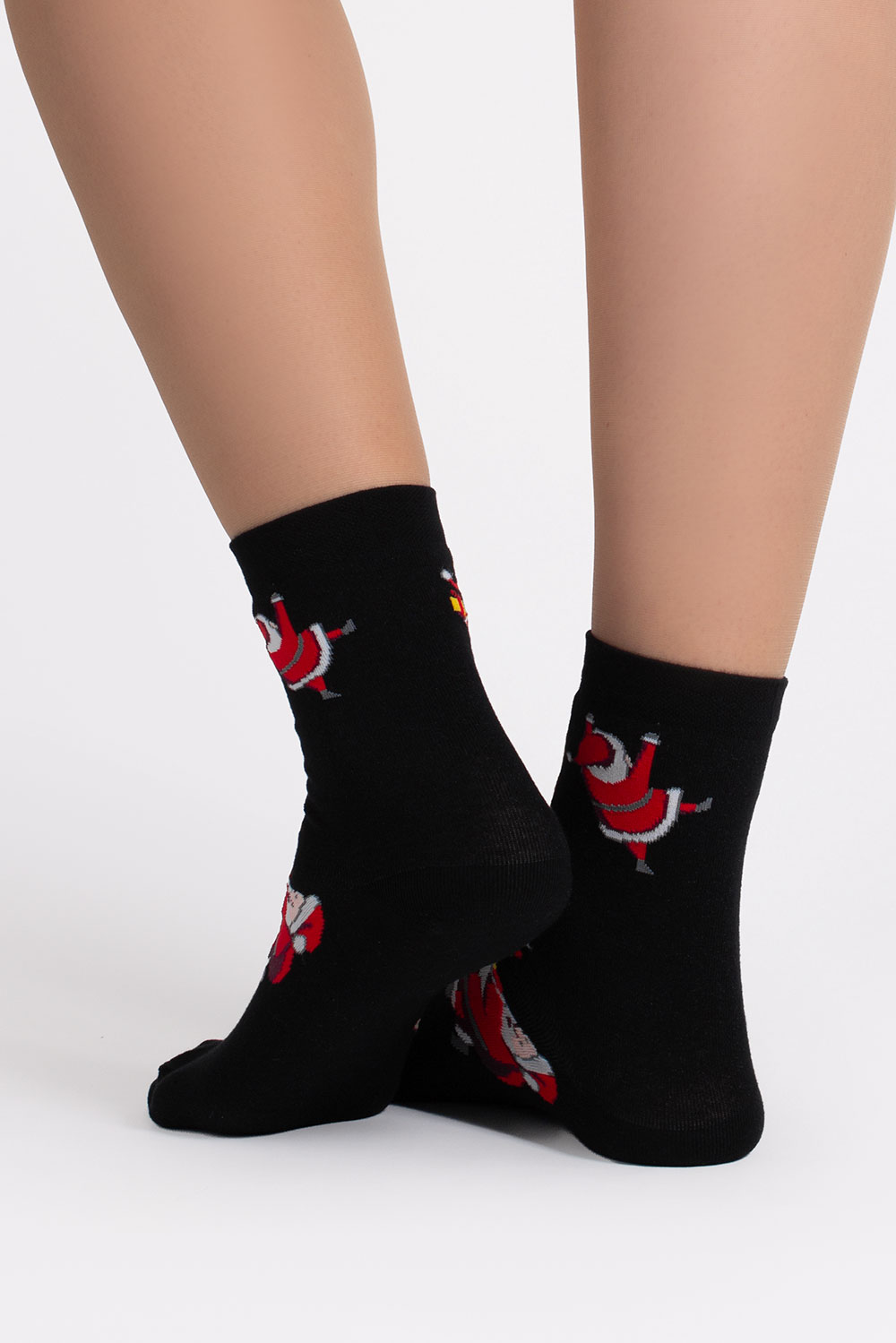 Жіночі шкарпетки новорічні з Сантами WS3 NEW YEAR 2601 Giulia (black), чорний