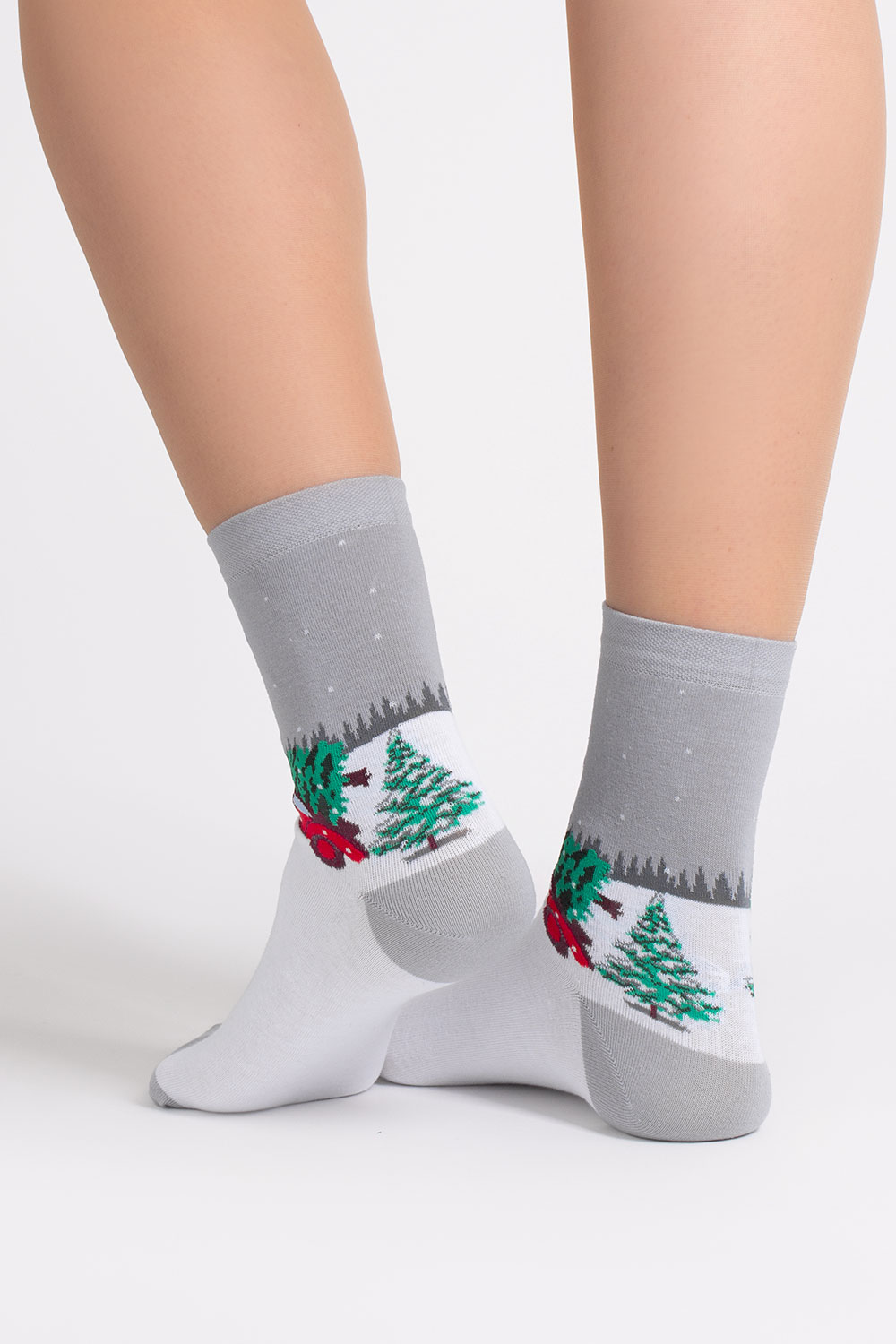 Жіночі шкарпетки новорічні WS3 NEW YEAR 2602 Giulia (silver), сірий