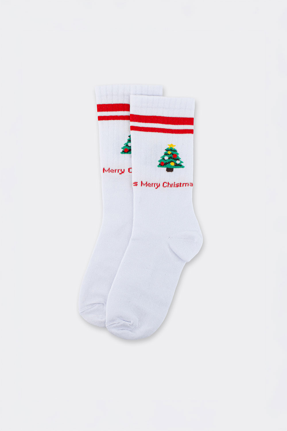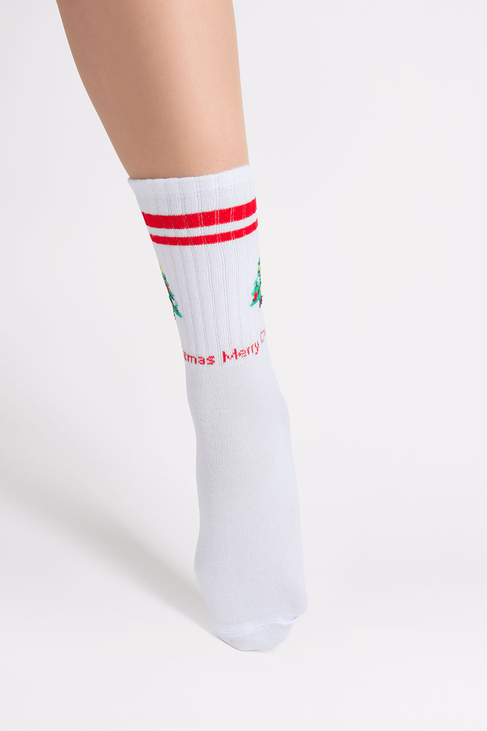 Жіночі шкарпетки з ялинкою WS4 NEW YEAR STRONG 2602 Giulia (white/red), білий/червоний