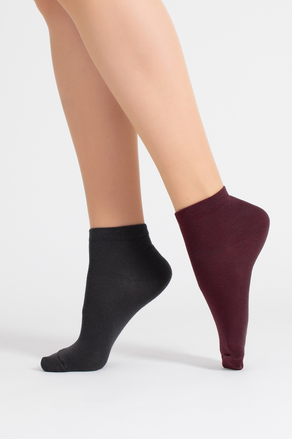 Носки женские короткие 2 пары WS2 CLASSIC Giulia (marsala/iron), бордовый/серый